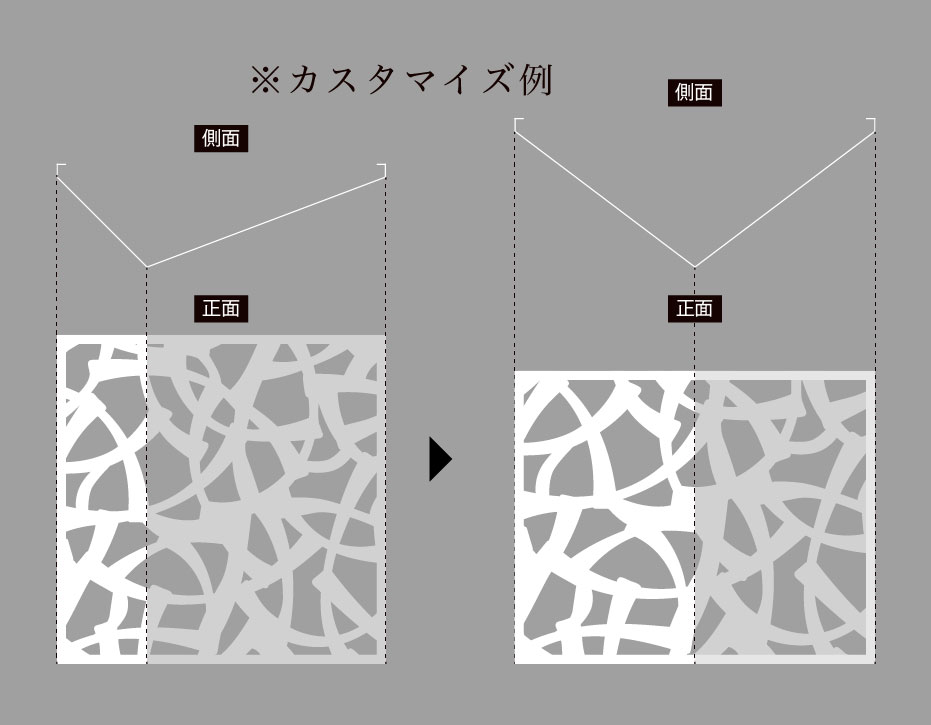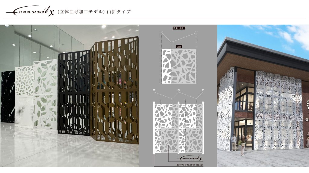立体曲げ加工モデル(FREEVEIL χ)山折タイプ:850mm角もしくは1000mm角(正面から見た寸法)